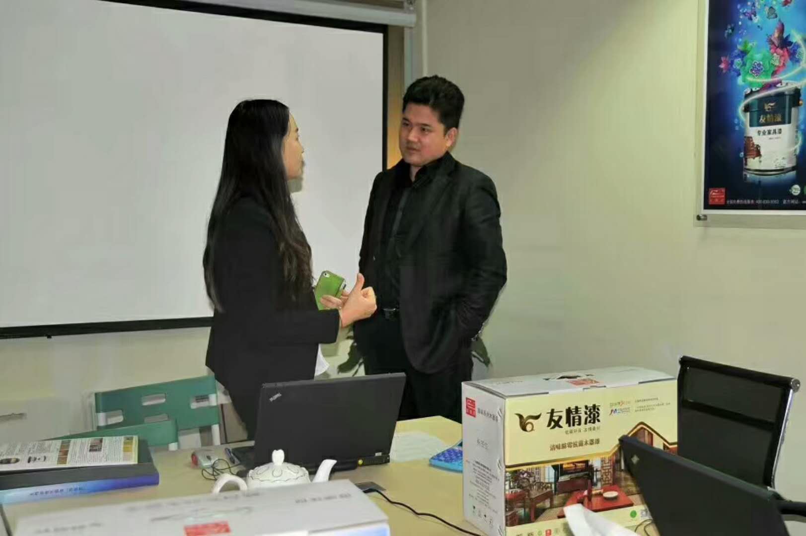 2018年1月11日,卡哈兒再次到訪友情漆公司,詳談進一步的合作大計,謀劃更大的銷售空間,讓建材銷售生意躍上一個大臺階,收獲大財富創(chuàng)造大事業(yè)。