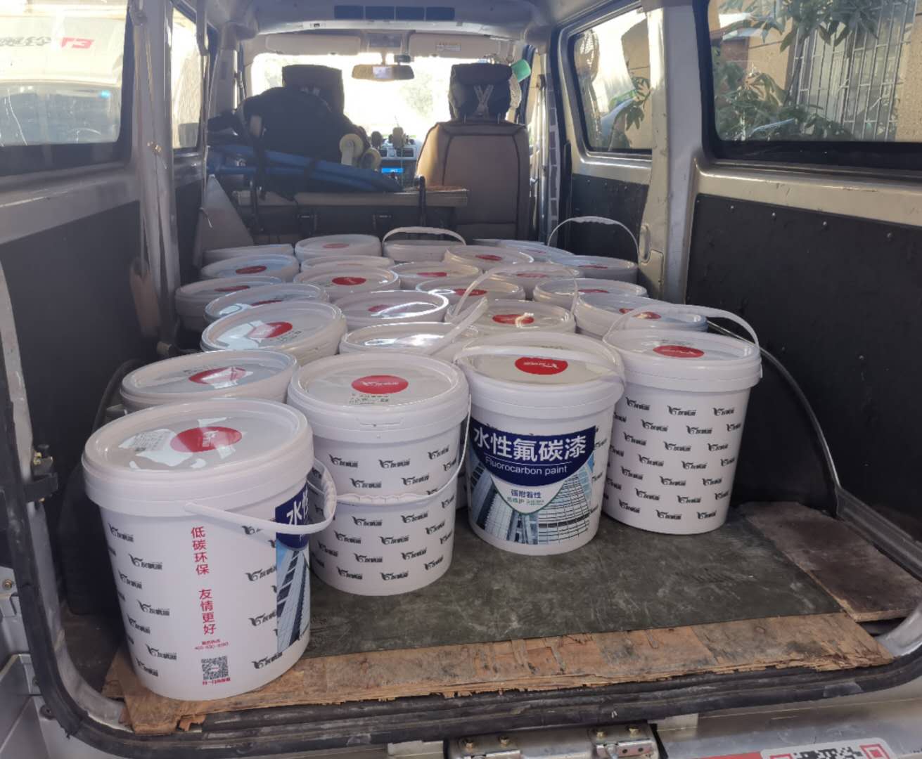 友情漆高效率出貨,高質量出品的做法,吸引了大量客戶上門訂貨。近日,廣東中山某建筑工地需要使用一大批水性氟碳漆,要求當天下單,第二天就送貨到工地。該工地采購人員,接洽友情漆之后,愉快地在12號決定與其合作下單生產,友情漆13號一早就出貨發往該工地。