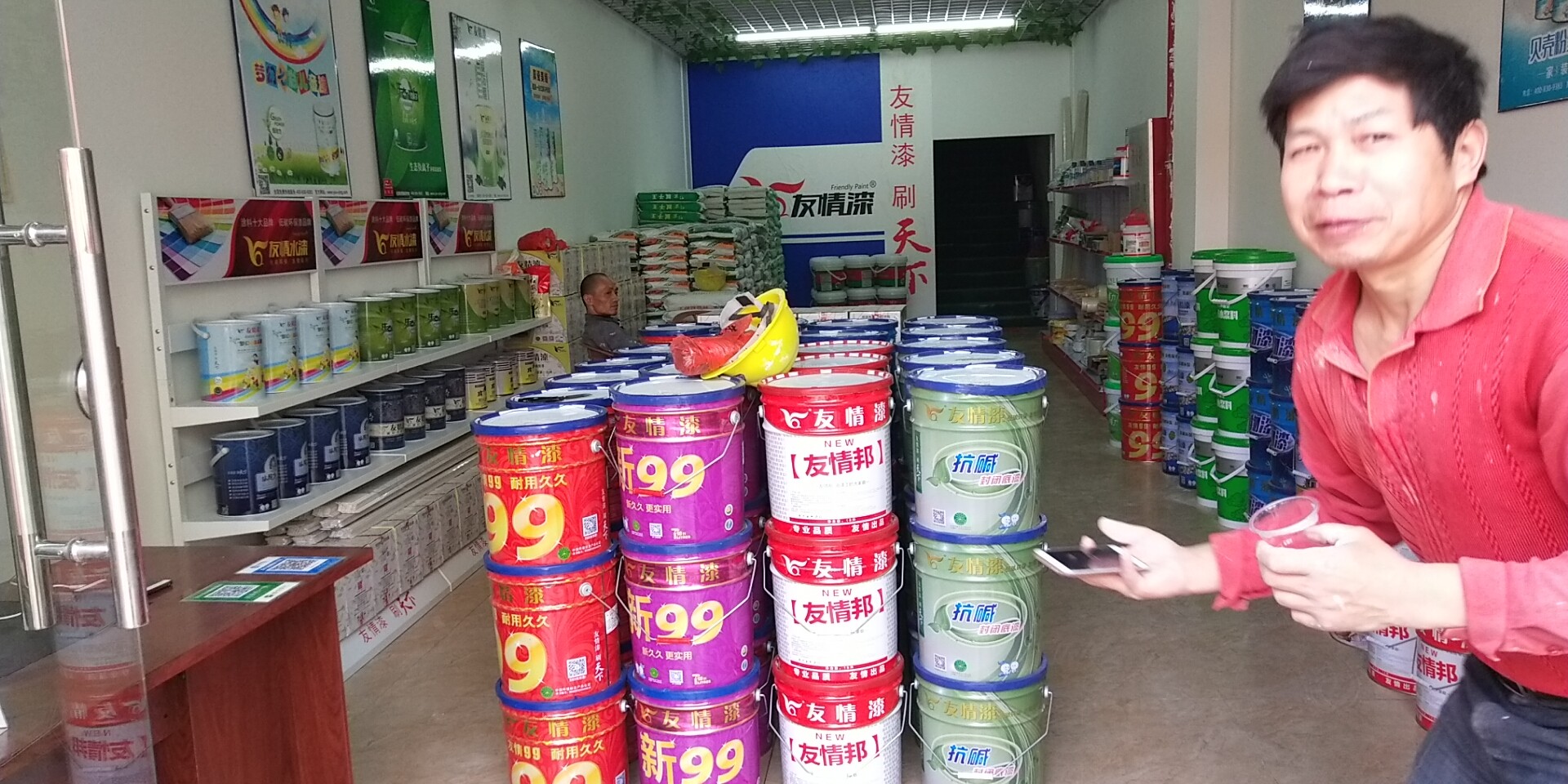 趙老板首先找到了行業中頗負盛名的友情漆來合作加盟,從貨品源頭上確保交到消費者手上的每一件產品貨真價實,杜絕山寨劣質冒牌貨現象,讓人放心購放心刷。