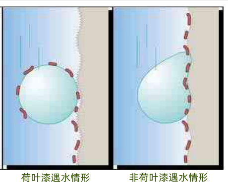 荷葉乳膠漆一般稱為荷葉漆,這是根據荷葉效應機理和硅樹脂外墻涂料實際應用的結果,把拒水、保潔結合起來,開發了具有顯微結構和憎水表面的乳膠漆,其采用具有持久憎水性的貧乳化劑有機硅乳液等一些專門物質,從而使其涂料膜具有荷花葉子的表面結構,達到拒水、保潔功能。