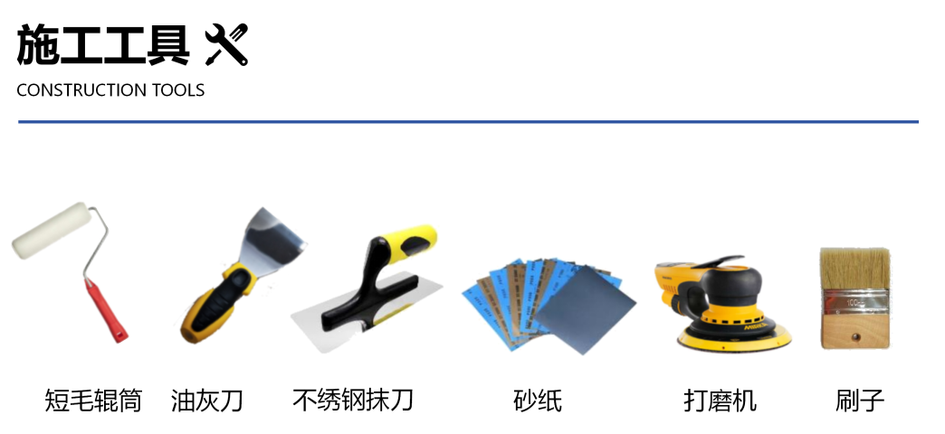 六、用待漆面完全干透后, 400到600目砂紙進行表面打磨,大面積情況下可用打磨機,打磨平整后用刷子將表面灰塵掃干凈。