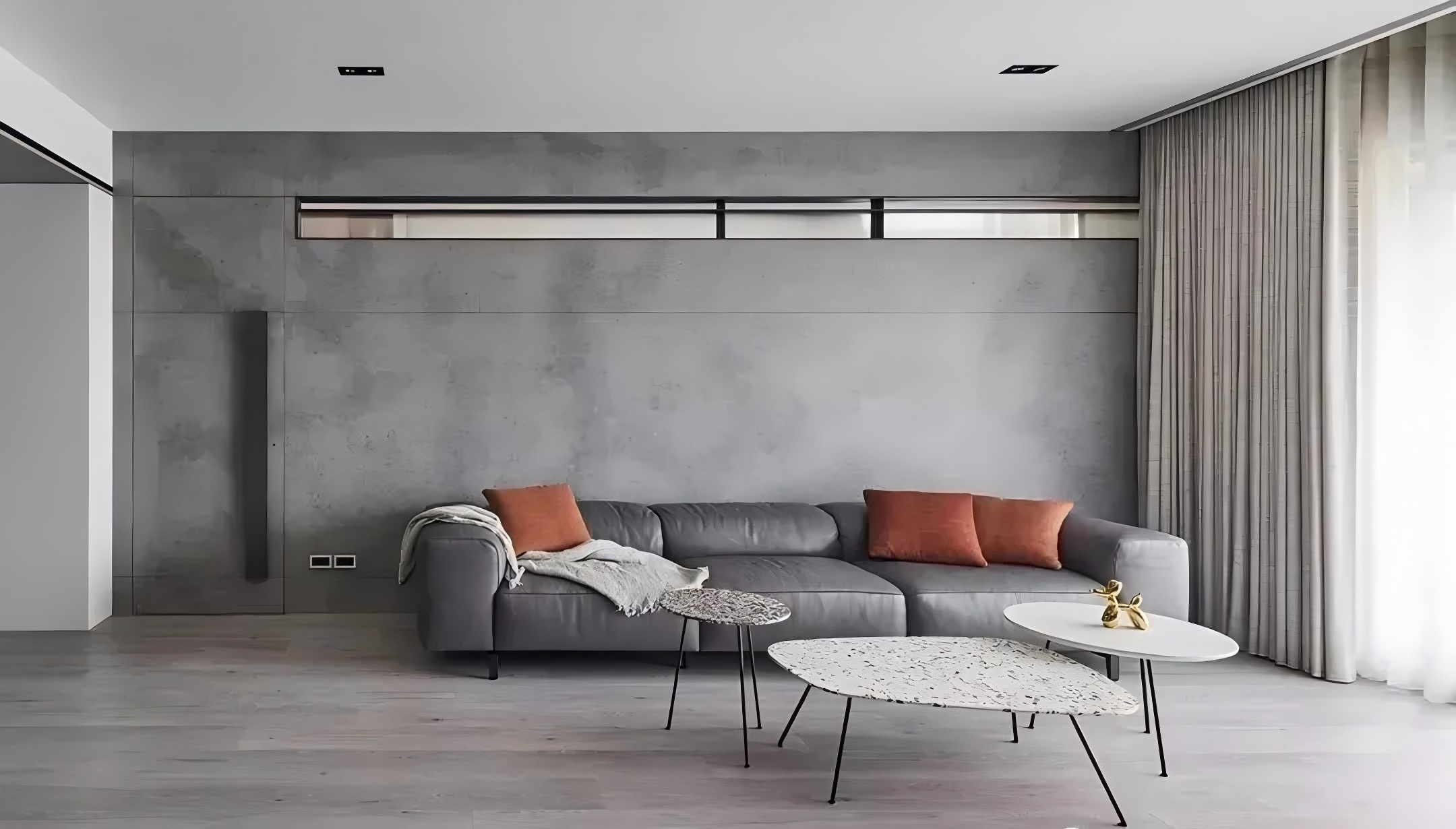 藝術(shù)漆中的清水混凝土,也叫清水泥,可以在多種不同的基面上施工,打造出一種質(zhì)樸自然的高級墻面裝飾效果,表面非常光滑,棱角分明,不作任何花哨裝飾,只是在表面涂一層或兩層透明的保護劑,顯得十分天然、莊重。