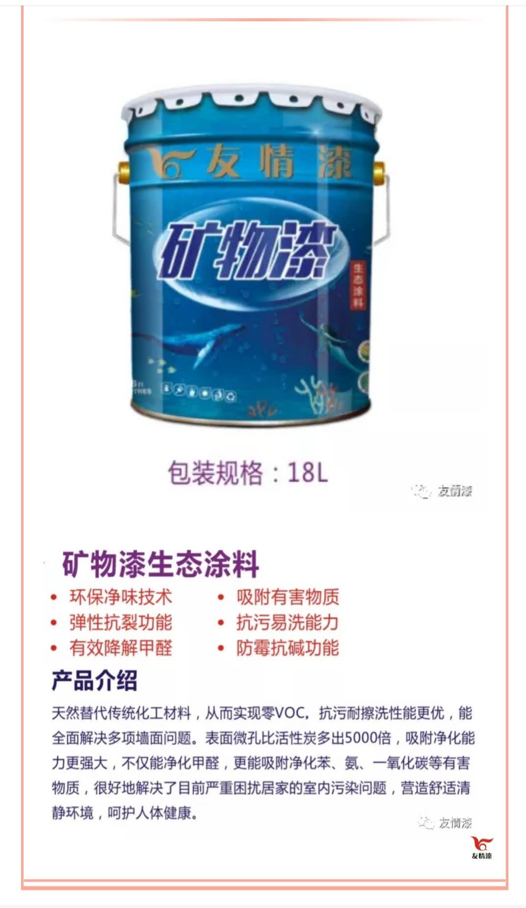 礦物漆不僅具備綠色環保、防潮抗霉抗菌、省時省力、施工后一小時即可達到正常使用的優勢,還擁有防火阻燃、防水耐油污等實用功能,為墻面刷漆裝飾增加了更多的優勢。