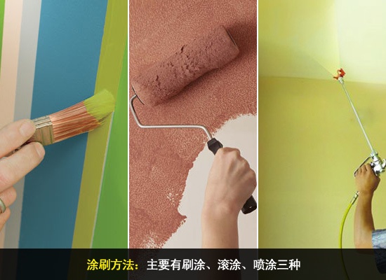 乳膠漆用刷、滾、噴,哪種方法好刷涂:手感較粗糙,有明顯的紋理效果,用料較節(jié)省,傳統(tǒng)施工工藝,非常簡單,易修補(bǔ),施工進(jìn)度慢;滾涂:手感較平整,有一定質(zhì)感,用料節(jié)省,傳統(tǒng)施工工藝,比較簡單,易修補(bǔ),施工進(jìn)度快;噴涂:手感非常平整光滑,用料浪費,現(xiàn)代化施工工藝,
