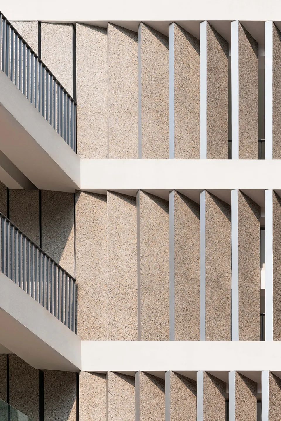 在建筑外墻裝修中,水洗石展現(xiàn)出獨特的風貌。由于其原材料有各種各樣的顏色、形狀,可以裝飾出各種形狀和設計的圖案,透出自然純樸的感覺。有些大面積外墻面裝修采用水洗石,與白色瓷磚搭配的做法收到了較好的效果。水洗石在建筑外墻的應用中具有多個特點,在質量上,杜絕了空鼓、裂縫等質量問題,石子分布均勻,無色差,平整度、垂直度容易保證。