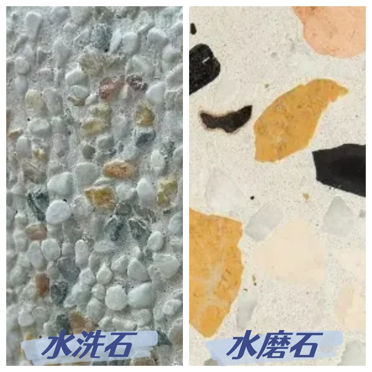 水洗石:表面有凹凸層次感。水磨石:表面平滑,平整