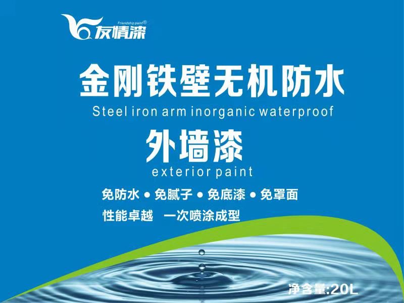 金剛鐵壁無機防水外墻漆為環保型納米復合的無機材料的外墻漆,可直接在水泥基面施工,免防水、免膩子、免底漆、免罩面漆,一次噴涂成型,具有超強的保色性和附著力,以及超長的耐候性。其漆膜本 身幾乎不會開裂,可達到防水抗堿性能的超強外墻涂裝產品。采用特殊復合無機 材料,高溫煅燒陶瓷粉體顏料,A 級鈦白粉,特殊加工技術精制而成。高效、快 捷、美觀、性能卓越。