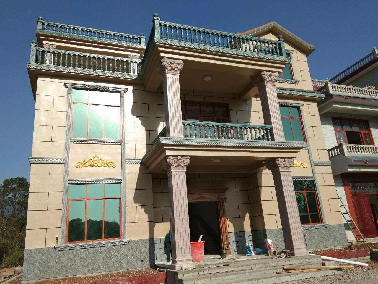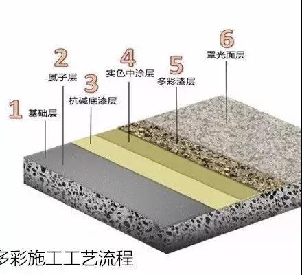 ⑤ 大面噴涂:在上道工藝完全干燥后方可噴涂水包水多彩涂料。嚴(yán)格控制足量噴涂,要求連續(xù)均勻噴涂,防止過(guò)量產(chǎn)生流掛,恰到好處一步到位可有利改善成型質(zhì)量,確保花樣穩(wěn)定、手感流暢、細(xì)膩光滑。