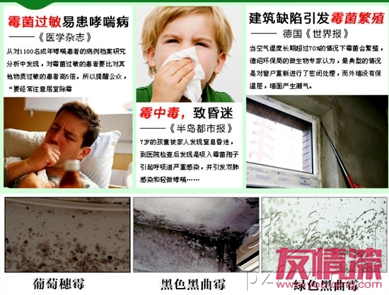 給、排水管或者暖氣管道發生滲漏,導致墻體受潮,時間一長,墻體就會發霉。