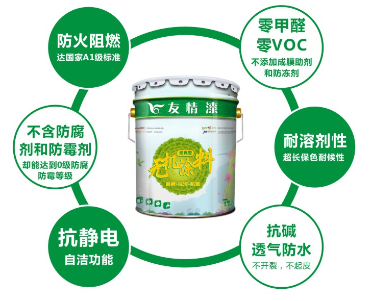 無機涂料具有無機物之本質,它不含有任何有機化學原料或溶劑,在生產和應用期間,無臭、無過敏之特性,對環境生態有利。