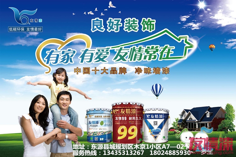 良好裝飾作為友情漆東源總代理,批發(fā)零售友情漆品牌系列的內(nèi)外墻漆,木器漆、防水涂料等各類產(chǎn)品,廠家直銷價(jià)格實(shí)惠,質(zhì)量保證服務(wù)到位,歡迎有油漆涂料需要的各位朋友,來電咨詢上門選購。