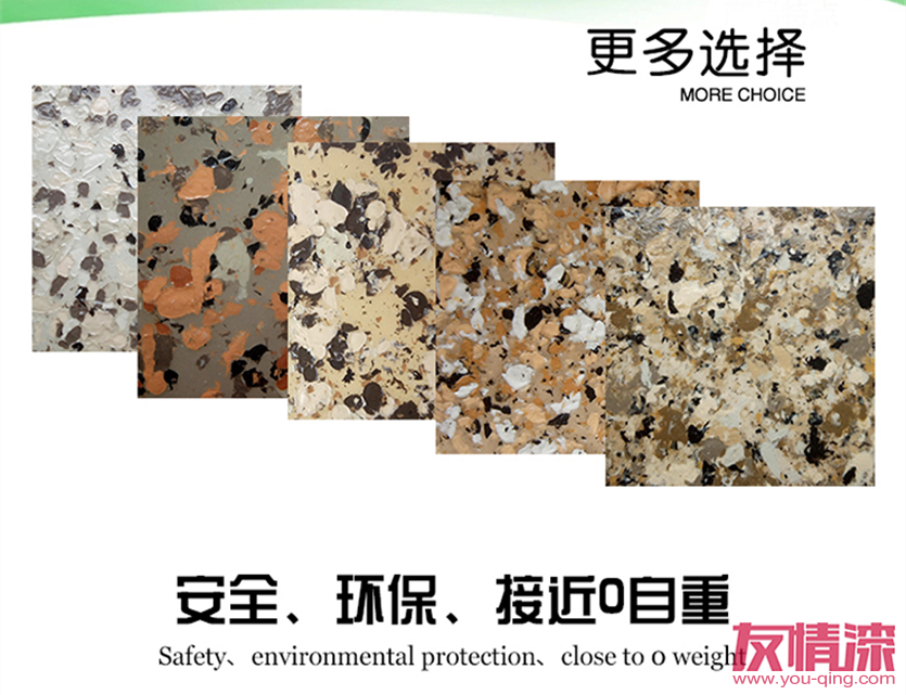 多彩漆多應用于仿造石材效果,是由兩種或兩種以上的水性色粒子懸浮在水性介層中,通過一次噴涂產生多種色彩的用于建筑物外墻的單組份涂料,它是采用丙烯酸硅樹脂乳液和氟碳樹脂乳涂為基料,結合優質無機顏料和高性能助劑,突破涂料化工學理,經特殊工藝加工而成的水性外墻多彩涂料。
