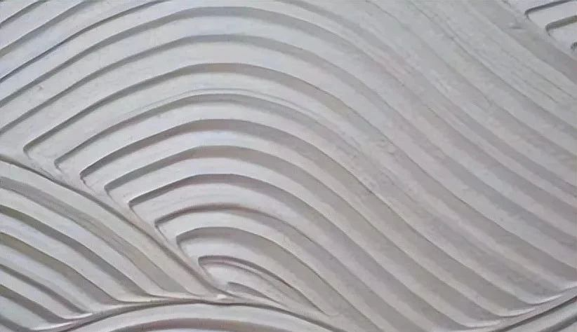 波浪紋理首先要求材料做的比較厚,然后再用三角刮板,或者紋理刷在墻面畫出形狀。通過水平橫向和垂直豎向的方向進行來回疊加,最后出來的效果就是橫豎陶紋,也叫陶藝(一般用圓齒梳)。如果是以布紋刷為中心,另一角畫半圓,每個半圓逐漸疊加,最后呈現的就是波浪效果。