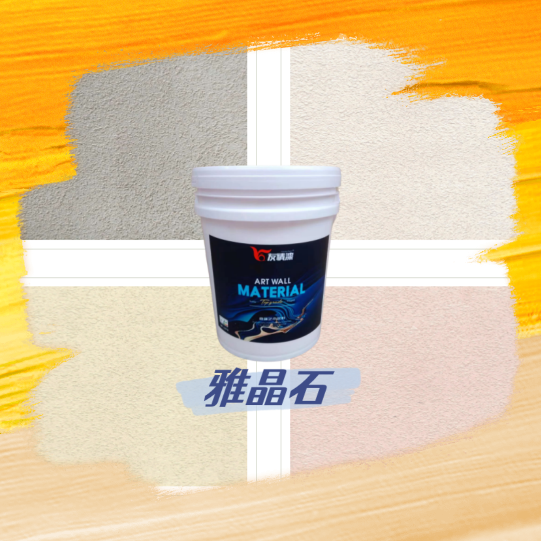 雅晶石是藝術質感涂料中的其中一個系列,由天然礦石打磨而成,并進行研碎精細分級。涂刷后,質感效果獨特,特別適合別墅、酒店、娛樂場所、家庭裝修內外墻等。它不但效果美輪美奐,而且施工便捷、性價比高,是入門級別的藝術涂料,滿足大眾需求。