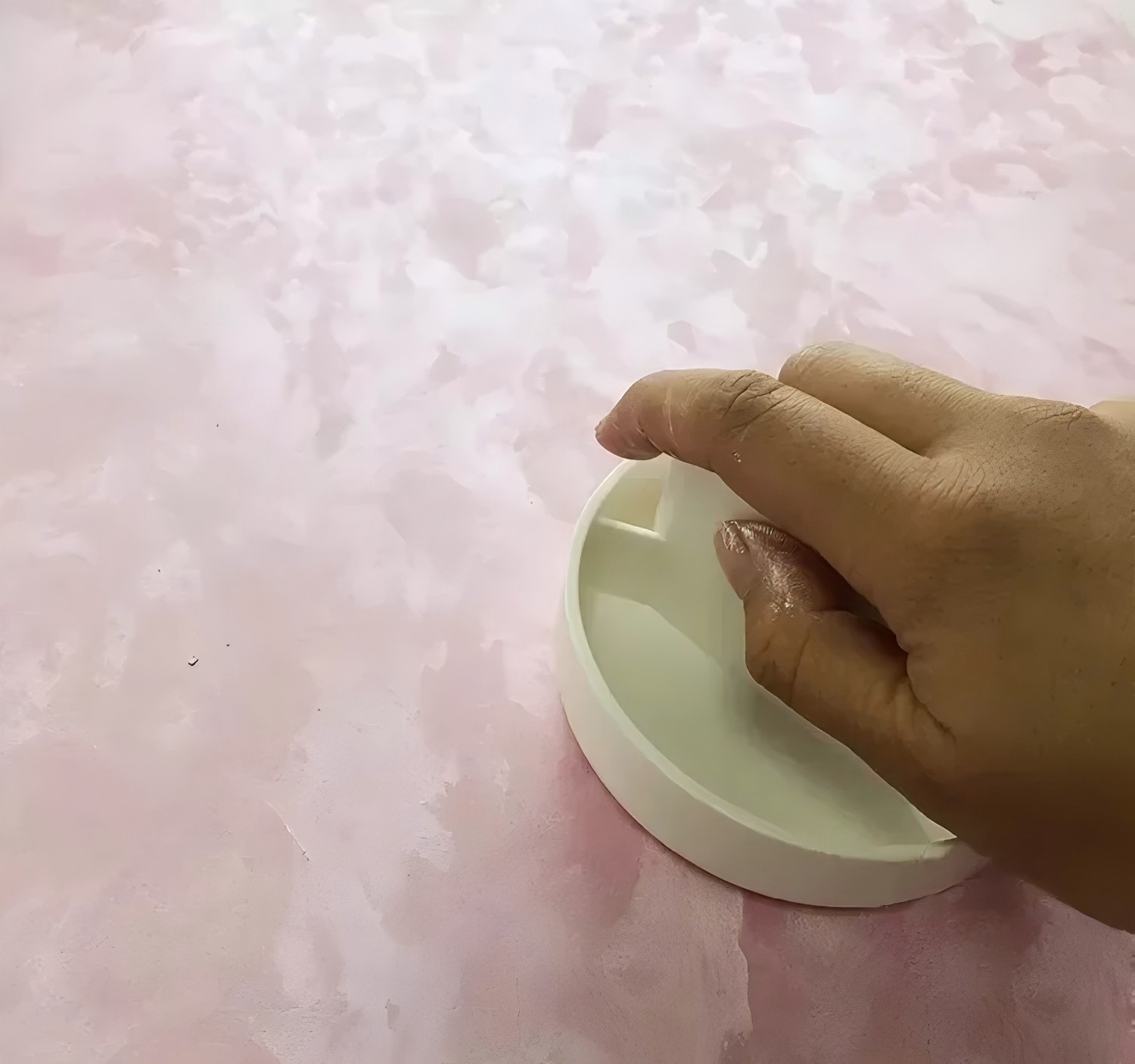 藝術漆與傳統的涂料施工是不一樣的。像我們傳統涂料的施工非常簡單,我們就使用毛刷或者是滾刷,自己都可以完成。但是對于藝術漆,要使用專用的批刀來進行,因為它是要實現特有的圖案和紋理。所以對于藝術漆的施工工藝流程大家一定要掌握,每一道工序都是對藝術效果保證的措施。