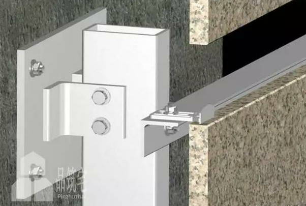 該方法以金屬掛件將飾面石材直接吊掛于墻面或空掛于鋼架之上,不需再灌漿粘貼。其原理是在主體結構上設主要受力點,通過金屬掛件將石材固定在建筑物上,形成石材裝飾幕墻。但材料昂貴做工復雜成本高,基本屬于土豪專用。