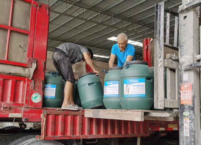 正在裝車發運的友情真石漆